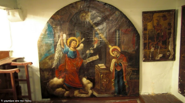υπήρχαν τοιχογραφίες με τα σημάδια του χρόνου πάνω τους, με ποιό