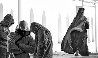 Οι νεαροί γυρνούν έκπληκτοι προς το μέρος του ιερέως. Το ανάστημα του μαυροφορεμένου άνδρα με τα γένια και τα μακρυά μαλλιά μοιάζει βγαλμένο από κάποιο ηρωικό έπος στα μάτια τους. Οι δύο πανικοβάλλονται και τρέπονται σε φυγή. Ο ένας βγάζει ένα μαχαίρι, μέσα από την τσέπη του παντελονιού του χωρίς καθυστέρηση. Δεν θέλει να επιτεθεί στον ιερέα, δεν τον νοιάζει αυτός. Θέλει να ξεκάνει μιας και καλή τον αιματοβαμμένο νεαρό, ο οποίος σφαδάζει από τον πόνο. Θέλει να τον σκοτώσει.