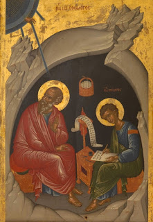Μὰ καὶ τοῦτο ὑπῆρξε Θεοῦ οἰκονομία, γιατὶ κι ἐκεῖ ὁ Θεολόγος μὲ τὸ θεόπνευστο κήρυγμα, τὴν ἁγία βιοτή του καὶ τὰ πολλὰ καὶ ἐξαίσια θαύματα, ποὺ τέλεσε, ὁδήγησε στὸ φῶς τοῦ εὐαγγελίου τοῦ Χριστοῦ πλείστους ὅσους κατοίκους τοῦ νησιοῦ. Ἐκεῖ εὑρισκόμενος, κάποια Κυριακή, ἐνῶ προσευχόταν σ᾽ ἕνα σπήλαιο, ὁ βράχος ἐπάνω του σχίσθηκε στὰ τρία καὶ ἐμφανίσθηκε μέσα σὲ ἑπτὰ λυχνίες ὁ Χριστὸς μέσα σὲ ὑπέρλαμπρο φῶς, καὶ φώτισε τὸν ἀγαπημένο του μαθητὴ νὰ συγγράψει τὸ συγκλονιστικὸ βιβλίο τῆς Ἀποκαλύψεως. Τὸ ἔτος 98, ὁ αὐτοκράτορας Τραϊανὸς ἀνακάλεσε μὲ διάταγμά του τὸν Ἰωάννη ἀπὸ τὴν Πάτμο στὴν Ἔφεσο, ὅπου συνέγραψε, ὑπαγορεύοντας στὸν μαθητή του Πρόχορο, τὸ Εὐαγγέλιο, ποὺ φέρει τὸ ὄνομά του, καὶ ποὺ εἶναι τὸ τελευταῖο χρονολογικὰ βιβλίο ποὺ γράφηκε τῆς Καινῆς Διαθήκης.